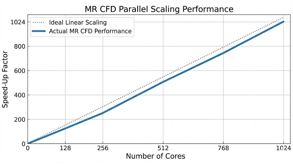 | Metric | Local Workstation (32 Cores) | MR CFD HPC Service (512 Cores) | Speed-Up Factor |