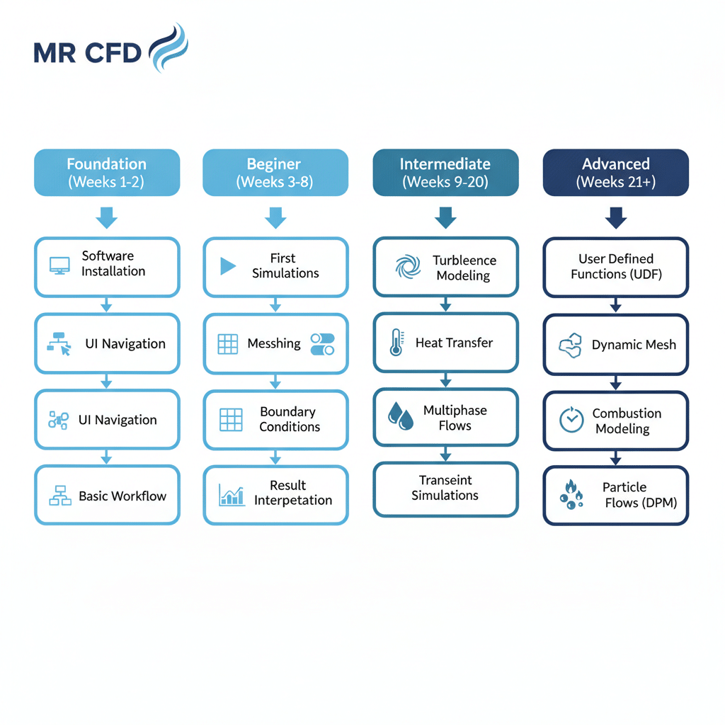 A structured approach is key to mastering a tool as comprehensive as Fluent. We’ve broken down the learning journey into four distinct stages, taking you from a complete novice to an advanced practitioner capable of tackling complex, real-world engineering challenges.