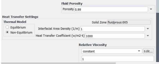 - The second model assumes thermal imbalance (Non-Equilibrium). The solid part can have a different temperature or heat flux compared to the fluid zone in this model.