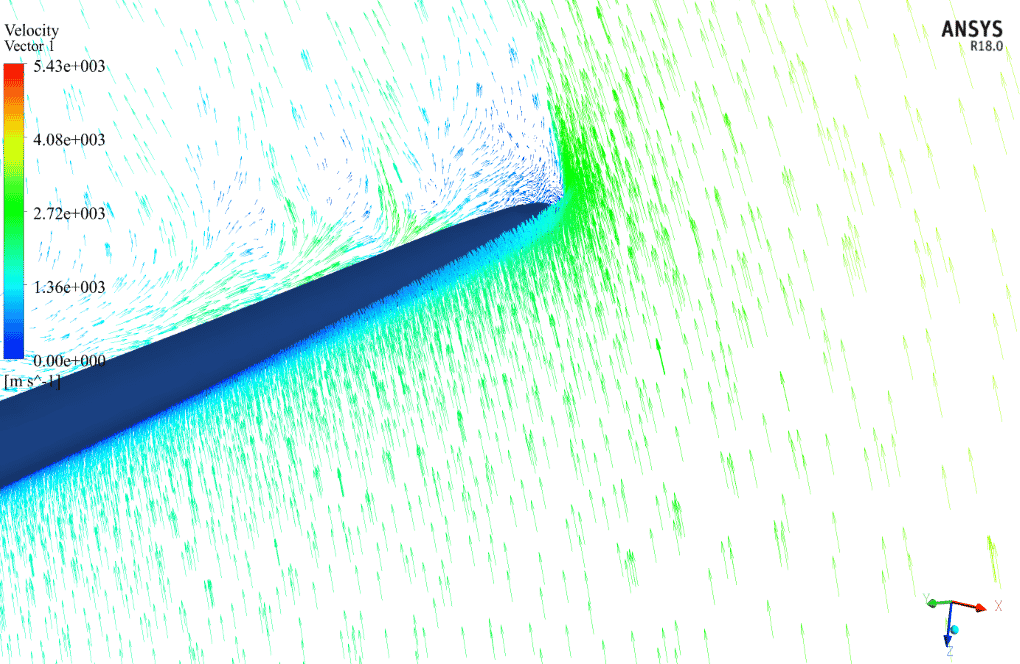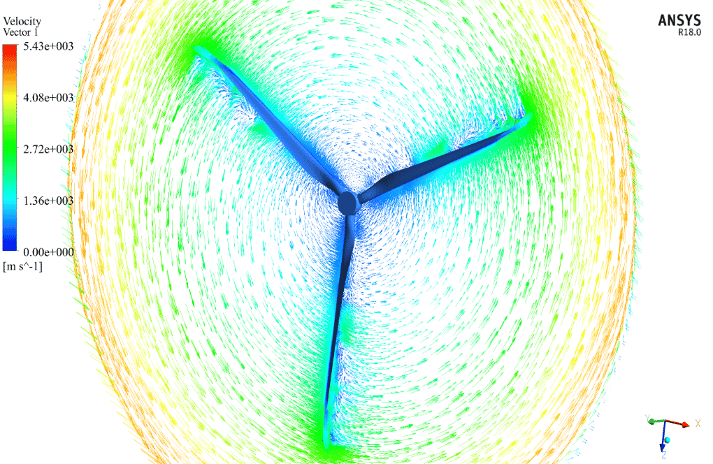 Using the MRF method, the blades can be assumed to be constant. The wind flow around the blades is rotated to the same rotational velocity of 72 rad.s-1 around the y-axis.