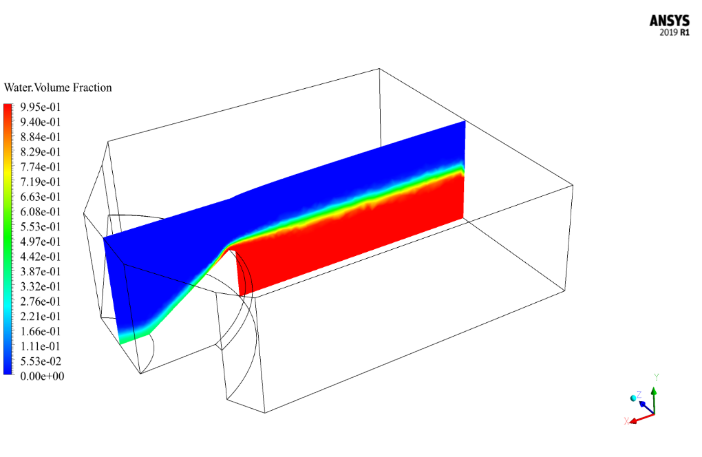 - To define the two-phase flow in this simulation, a Multiphase VOF (volume of fluid) model is used, considering the Free Surface model.