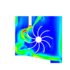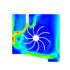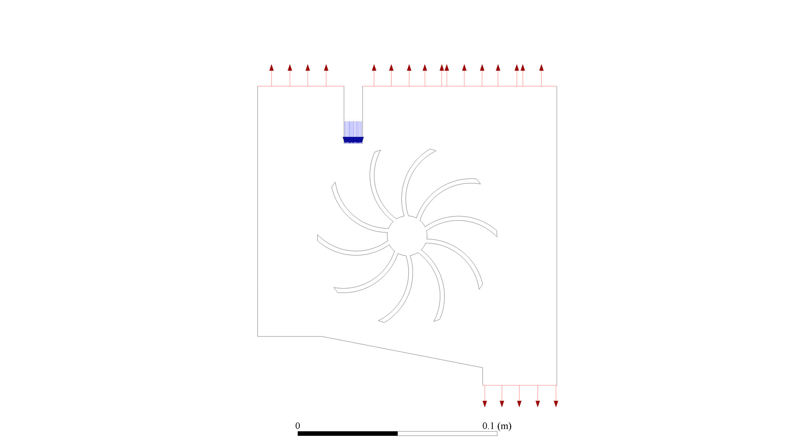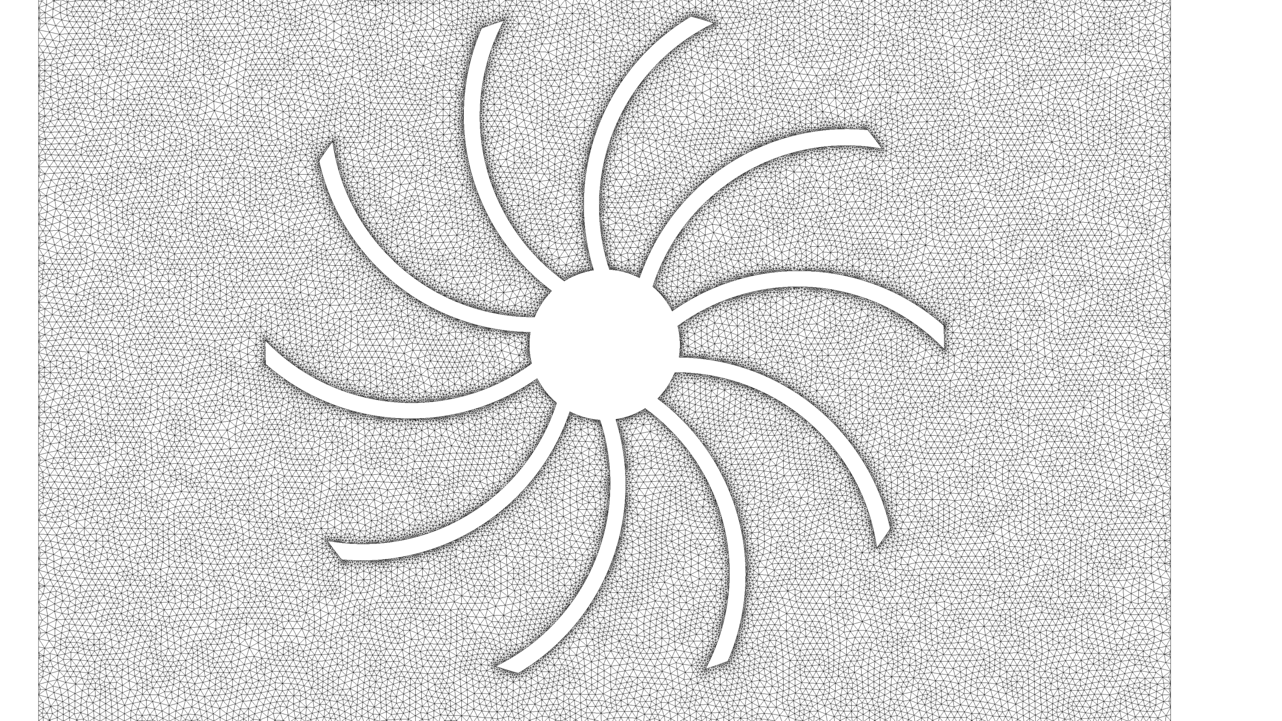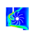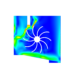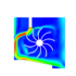 The simulation focuses on a scenario where the incoming airflow drives the rotation of a turbine, represented by a spiral-shaped structure in the center of the domain. This approach allows for the analysis of how the wind’s kinetic energy is converted into rotational motion, which is the fundamental principle behind wind turbine operation.