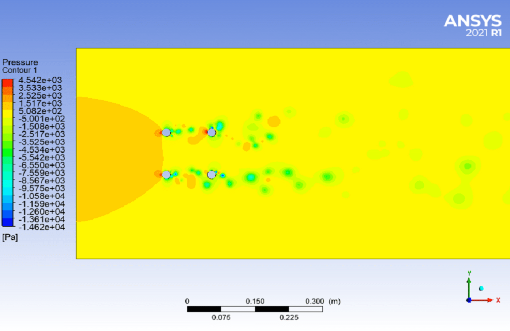 This acoustic project simulates sound pressure waves around cylinders in 4 different positions (4 cases) using Ansys Fluent software.
