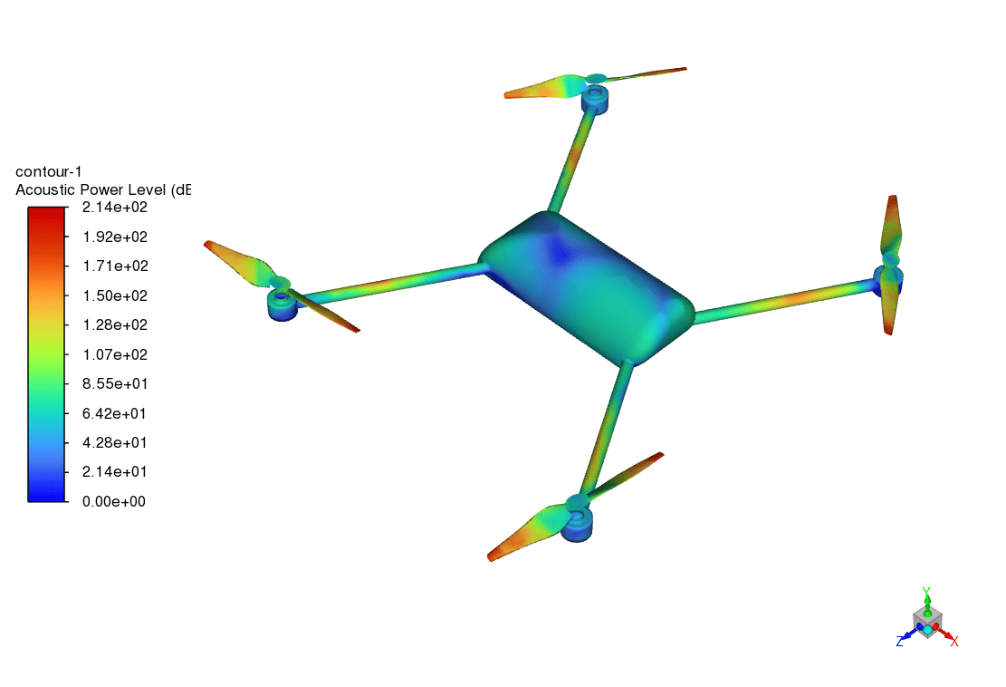 - In this study, a comprehensive acoustic simulation of a quadcopter was performed using ANSYS Fluent