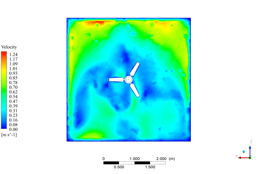 - We use the Mesh Motion method to define the rotational of the fan.