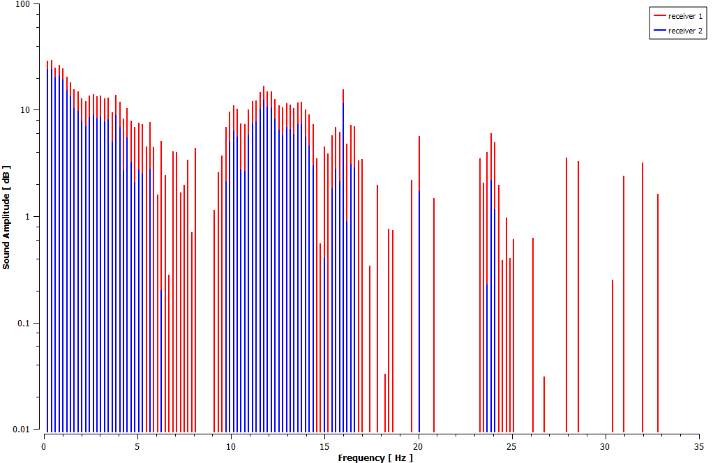 At the end of the solution process, two and three-dimensional contours and plots related to room pressure, temperature, and velocity are obtained. CFD Post software draws room sound pressure and amplitude plots in different points defined in Ansys Fluent software.