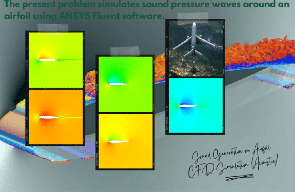 Problem number 2 simulates sound pressure waves around an airfoil. This project examines the sound waves generated around the body of an airfoil. This project uses an acoustic model in Fluent software to simulate and analyze sound or acoustic waves. The Broadband Noise Sources model has also been used to define the type of acoustic model of the present work. Problem number 6 simulates sound pressure waves around an AUDI car with and without a spoiler. Aeroacoustics is a branch of acoustic science that investigates the production of Noise. In general, Noise can be generated by the movement of turbulent fluid or from collisions of aerodynamic forces with surfaces.