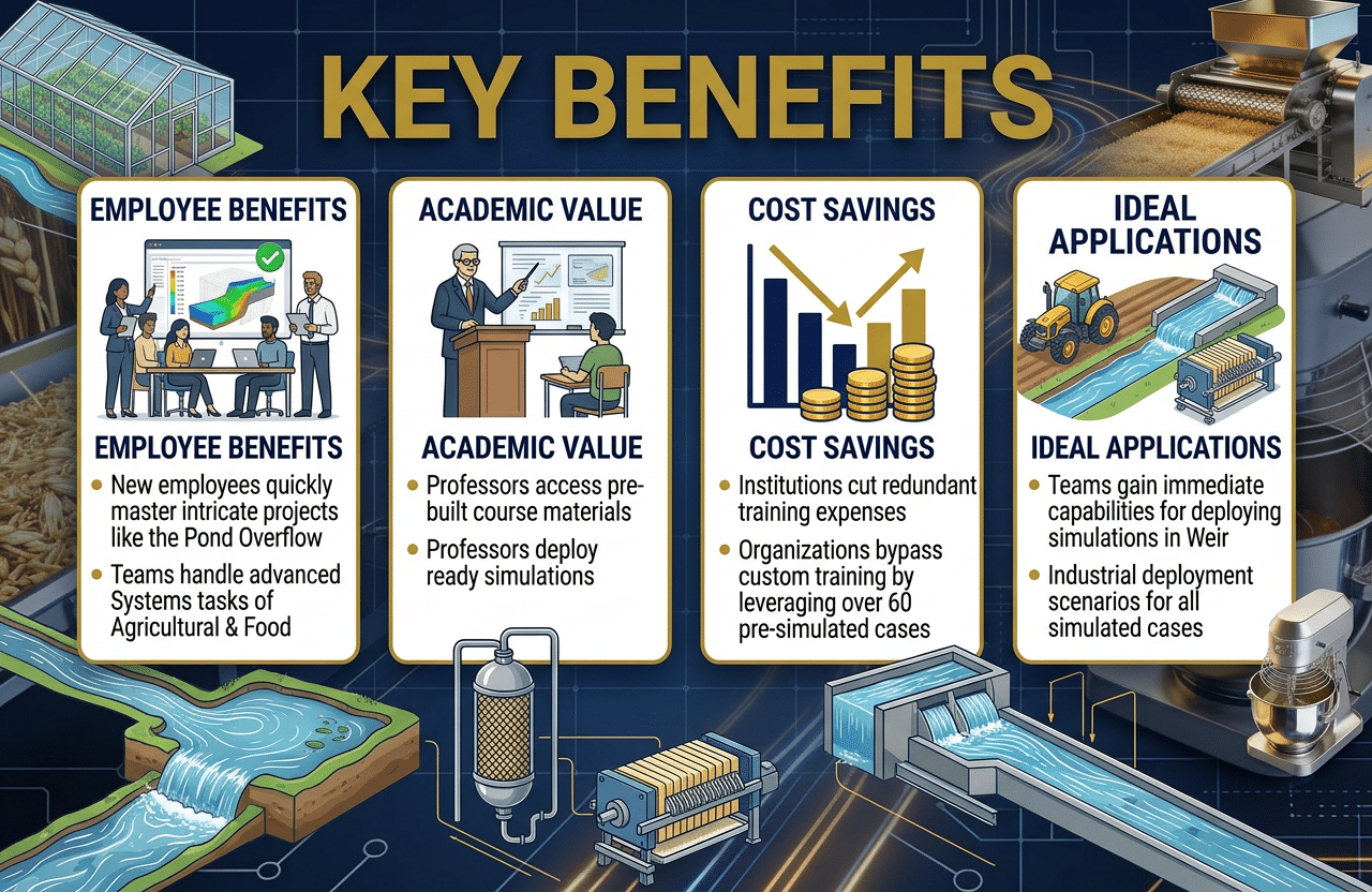Teams gain immediate capabilities for deploying simulations in Weir, boosting productivity across the Agricultural & Food industries. This comprehensive resource supports seamless project execution without extensive prior experience.