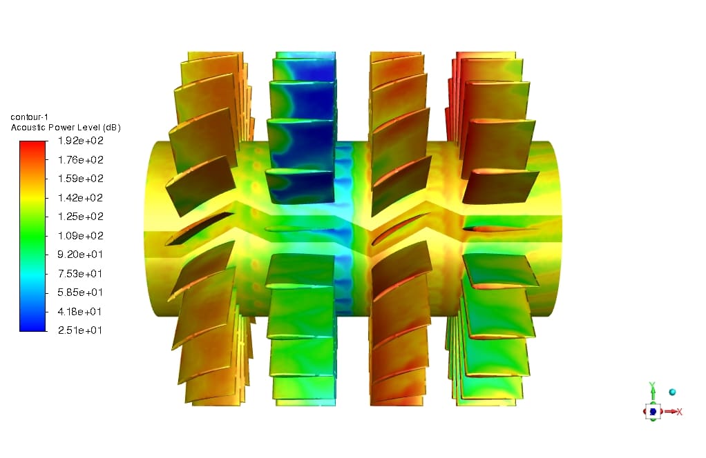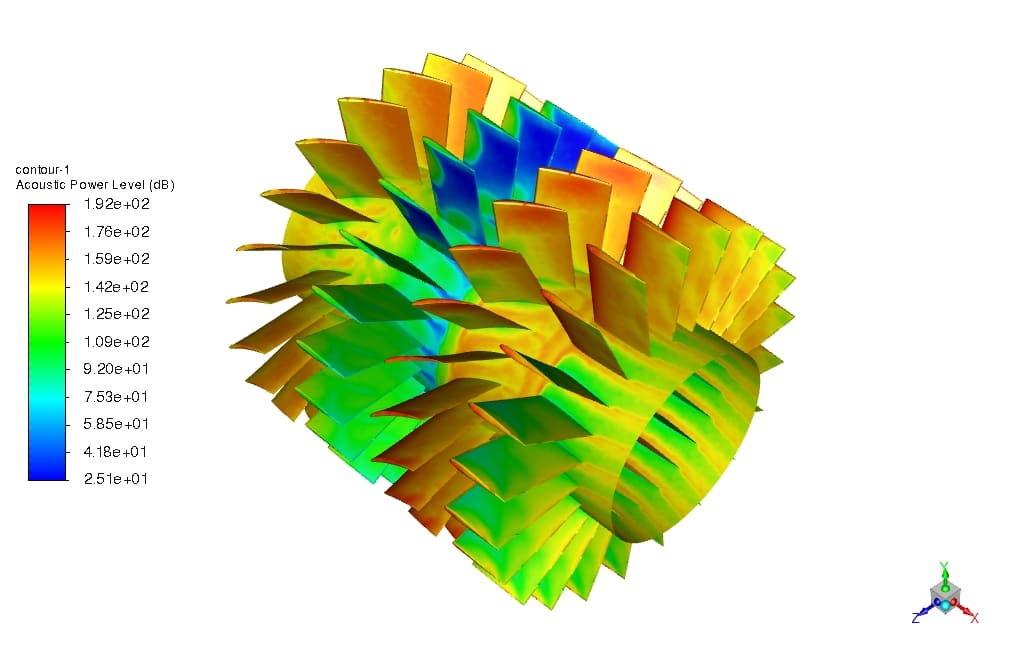 - The present problem simulates the aeroacoustics and sound generation by an airflow inside a four-row multistage compressor (axial flow compressor) using ANSYS Fluent software.