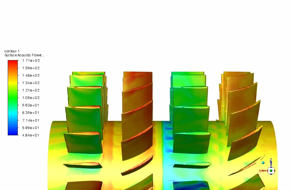 In this project, we simulate the Air Compressor Acoustics Analysis in ANSYS Fluent software. Also the present problem simulates the aeroacoustics and sound generation by an airflow inside a four-row multistage compressor (axial flow compressor) using ANSYS Fluent software.