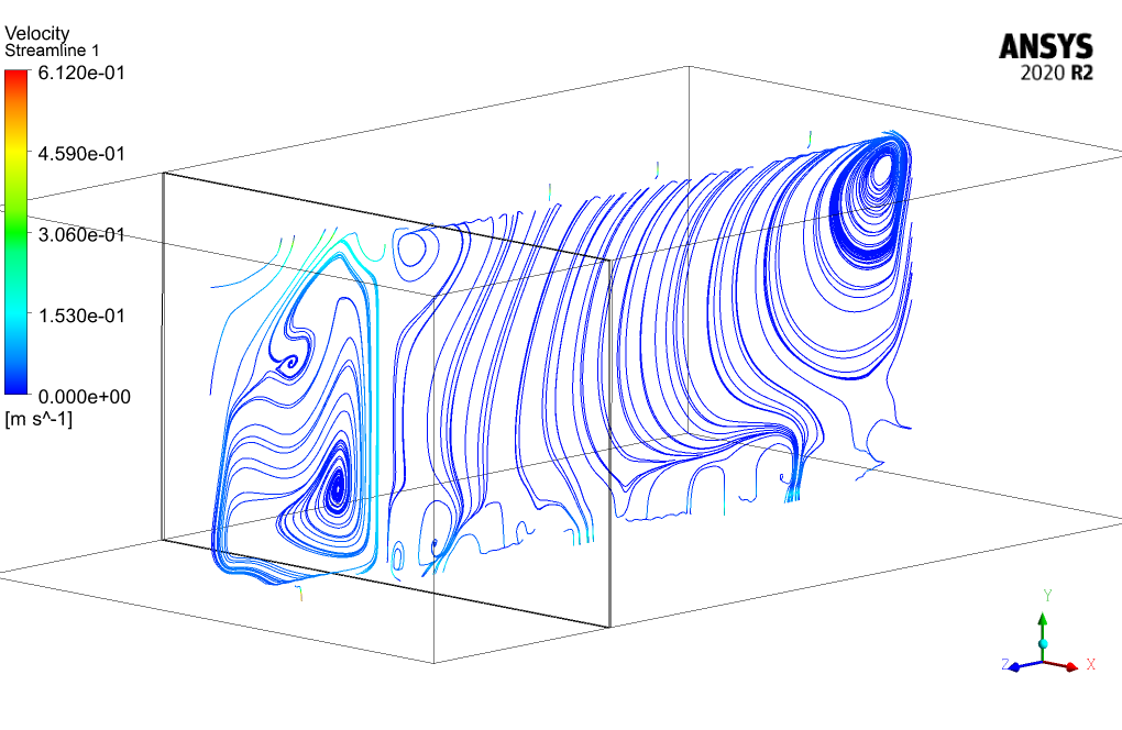 Also, the energy model is activated to calculate the temperature distribution in the domain. It should also be pointed out that the ideal-gas law accounts for the changes in density due to temperature changes.