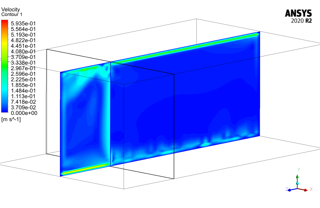 Also, by viewing the temperature contour, it can be easily observed that the room space temperature is clearly higher than the balcony because the room’s walls are opaque and absorb the most heat from the sun. In contrast, the balcony’s glass walls will absorb lesser heat.
