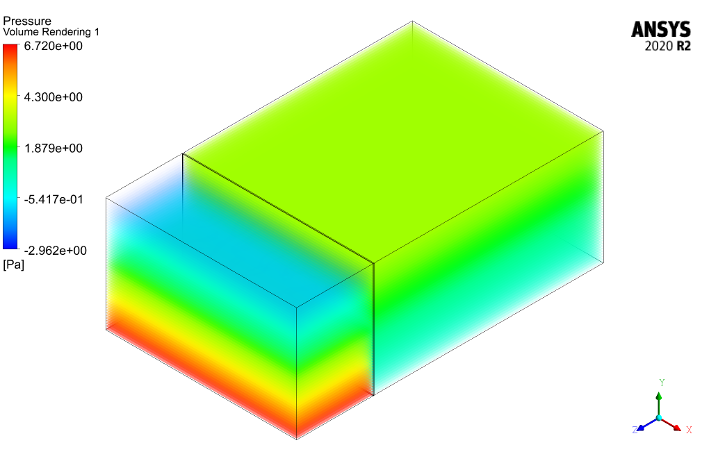 At the end of the solution process, two and three-dimensional contours related to the velocity, temperature, pressure, and streamlines inside the room and balcony are obtained. The contours related to pressure clearly show how natural convection can create stratified pressure levels inside enclosed spaces.