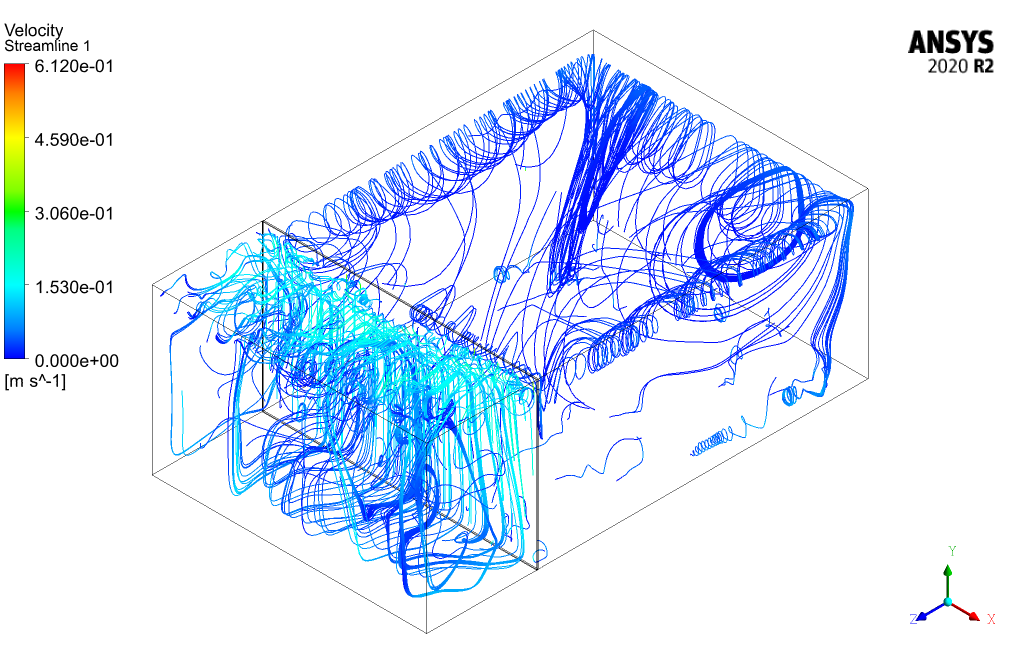 Meanwhile, the streamlines clearly show how rotating flow is formed within both room and balcony, indicating how natural convection moves the air within these spaces.