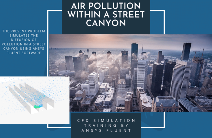 - The problem numerically simulates the Air Pollution within a Street Canyon using ANSYS Fluent software.