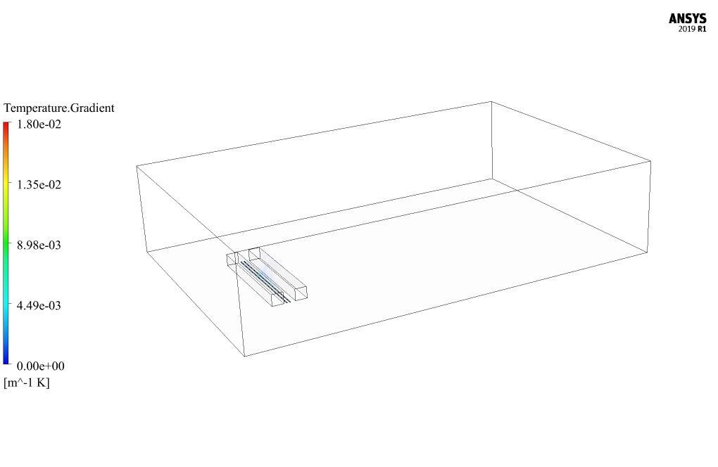 Also, the air temperature is set to 300K. Moreover, the RNG k-epsilon model and energy equation are enabled to simulate the turbulent fluid equations and calculate the temperature change within the domain.