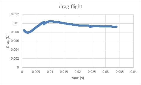The results obtained from the simulation of lift and drag values for the fuselage are also the thrust and torque values for the propeller, which are shown in the following diagrams.