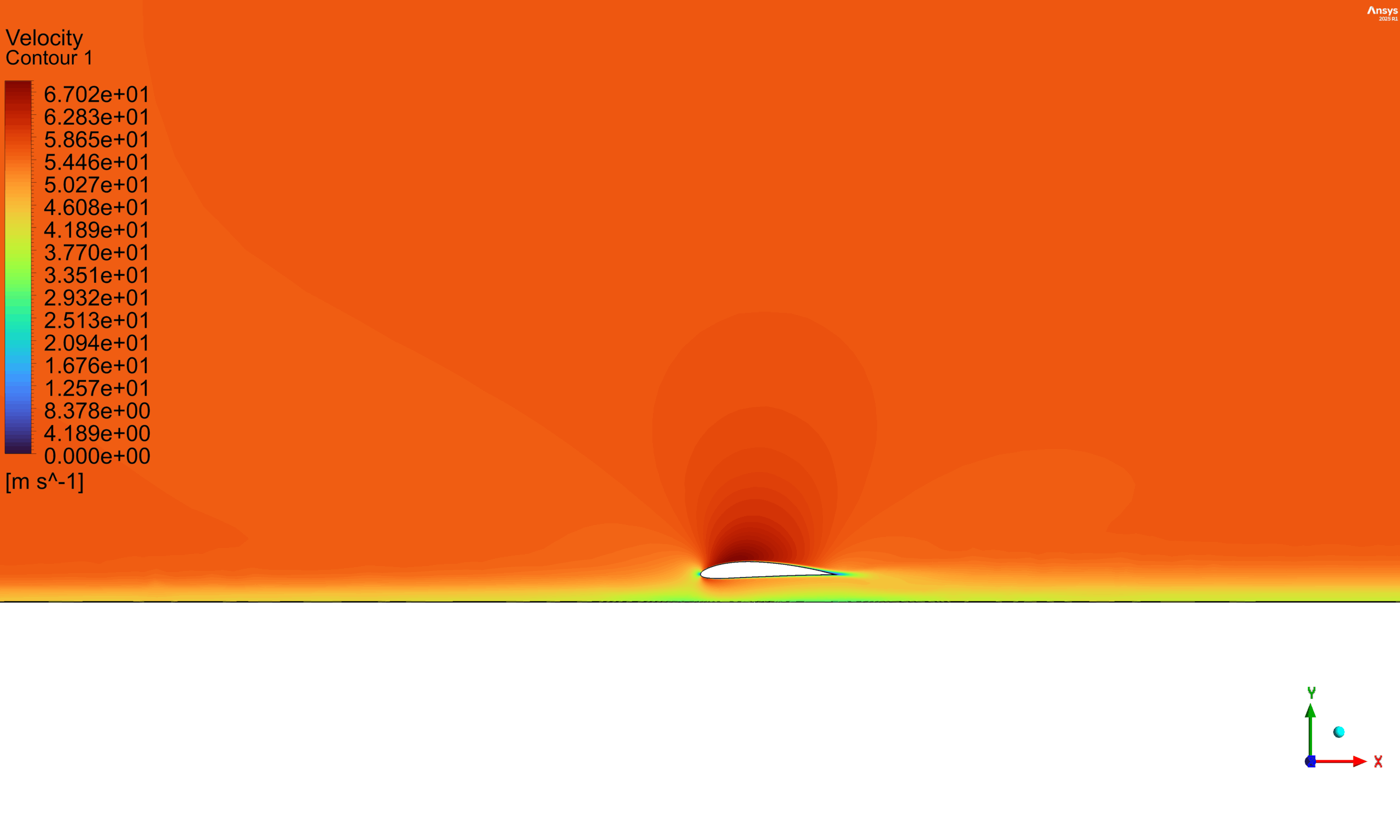This simulation was conducted to analyze the aerodynamic behavior of an airfoil placed above a sinusoidal wall in a transient flow field using ANSYS Fluent. The study focuses on evaluating the velocity and pressure distribution around the airfoil and within the flow domain. A moving zone was introduced to replicate relative motion between the airfoil and the surrounding air, providing a more realistic representation of unsteady aerodynamic conditions. The simulation accounts for turbulence, gravity, and the coupling between pressure and velocity fields to ensure physical accuracy. The main objective of this project was to observe how a wavy surface and moving reference frame influence the aerodynamic characteristics of the airfoil.