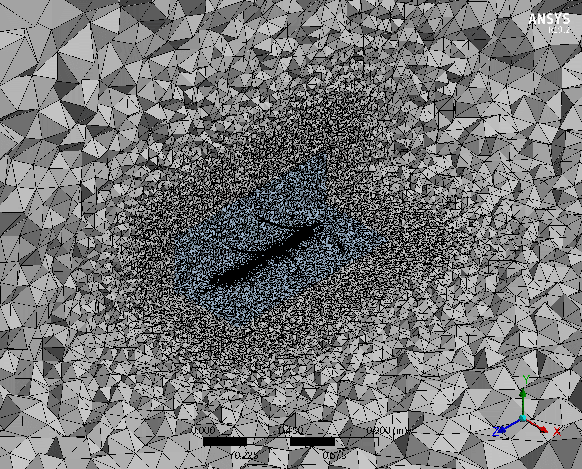 - The geometry is designed in Solid works then meshed in ANSYS Meshing with 3,207,809 unstructured cells.