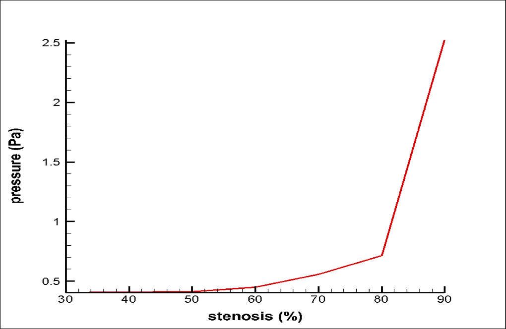 With each increase in the percentage of artery clogging, the complexity of the flow behavior increases, which in turn may require a denser mesh near the stenosis and possibly more computational iterations for the solution to converge. As a result, computational time and resources may increase with higher percentages of occlusion to ensure accurate results for fluid behavior.