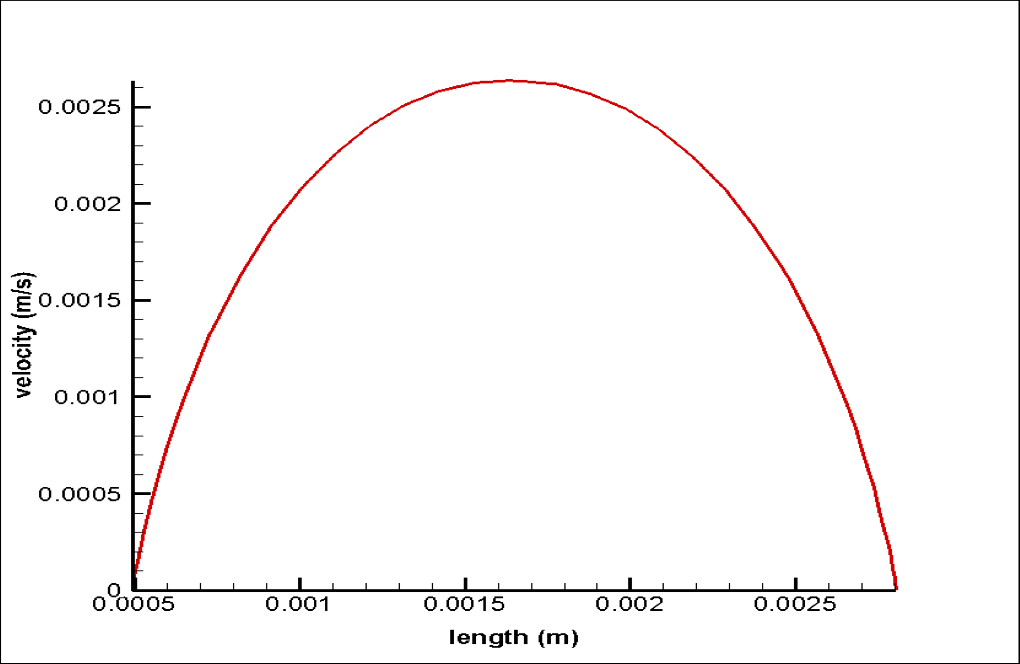 For the geometry of the vessel, a curve line function was used to plot the stenosis of the vessel branch. This function represents the sum of the points x and y that make up a curvature line obtained from the relation ‘‘y=0.0002475cos((πx)/0.001)’’.