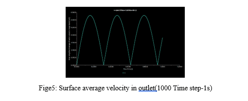 4.Boundary Conditions: At the inlet, a User-Defined Function (UDF) was implemented to simulate pulsatile blood flow, with velocities ranging from 0 to 0.33 m/s, mimicking the conditions in an artery. The outlet velocity profiles were monitored throughout the simulations.