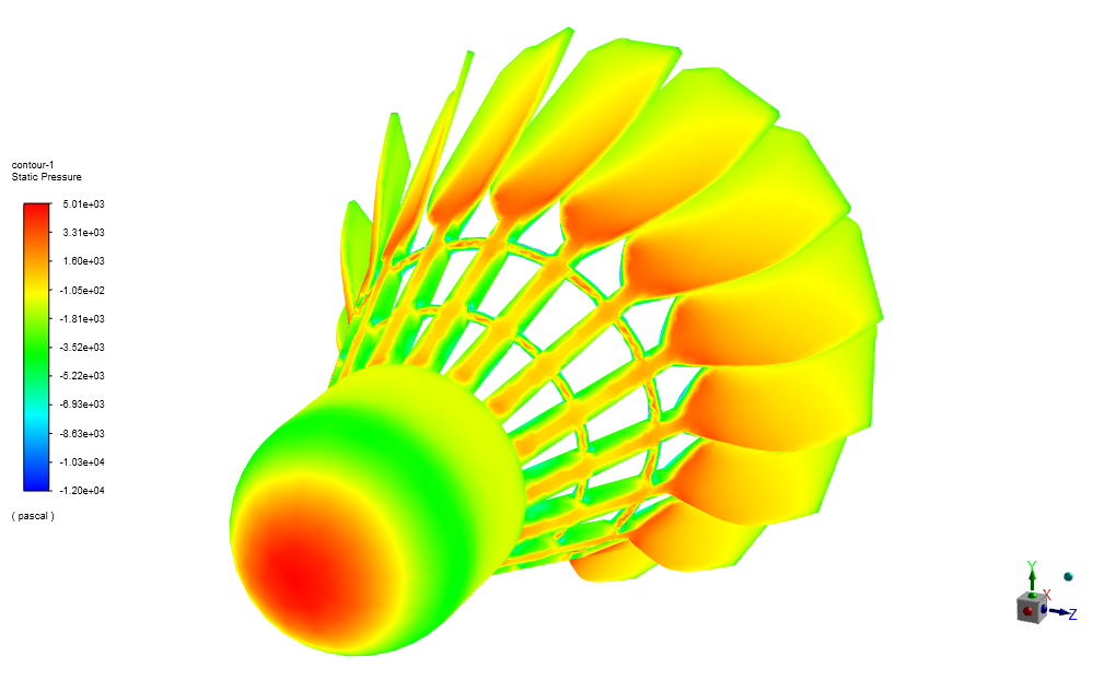 The shuttlecock simulation project does an excellent job of detailing the process of airflow analysis using ANSYS Fluent. Your standards for meshing and detailed explanation of the solver settings are particularly helpful. The application of the steady-state assumption and discounting gravity’s effect seem suitable for analyzing the performance of shuttlecock in high-speed conditions. It’s also wonderful to see how your utilization of the k-epsilon model and the chosen wall function affect the accuracy of the simulation results.
