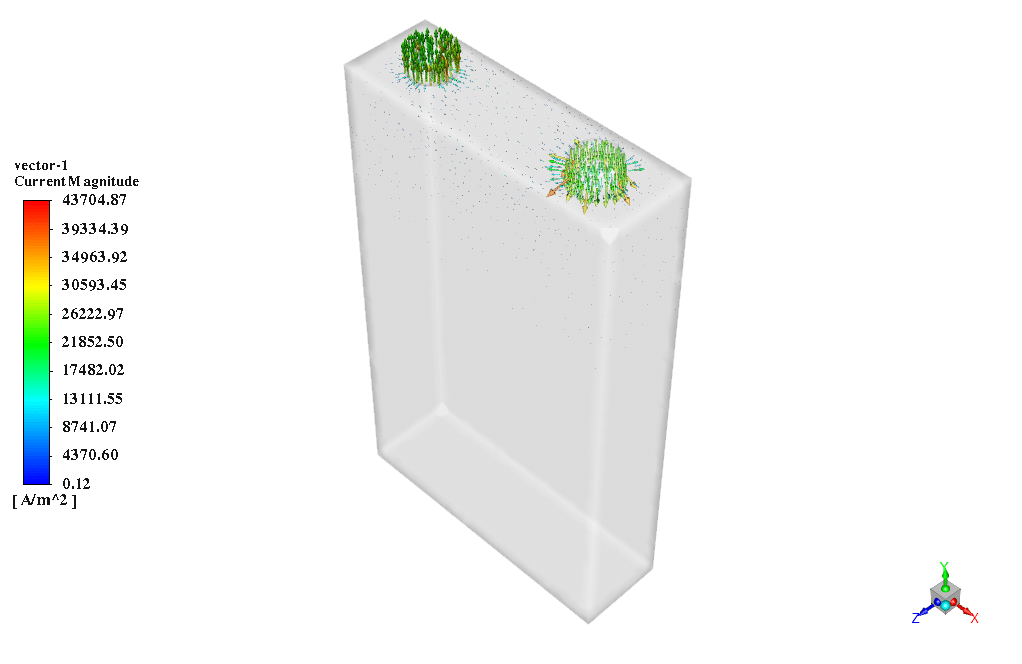 In addition, we obtained contours of temperature, current magnitude, and SOC (state of charge) for our battery in the final state.
