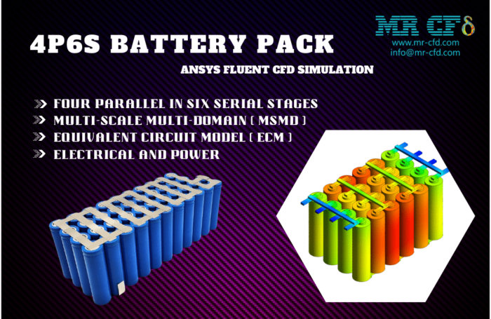 - This product numerically simulates the 4S6P Battery Pack using ANSYS Fluent software.
