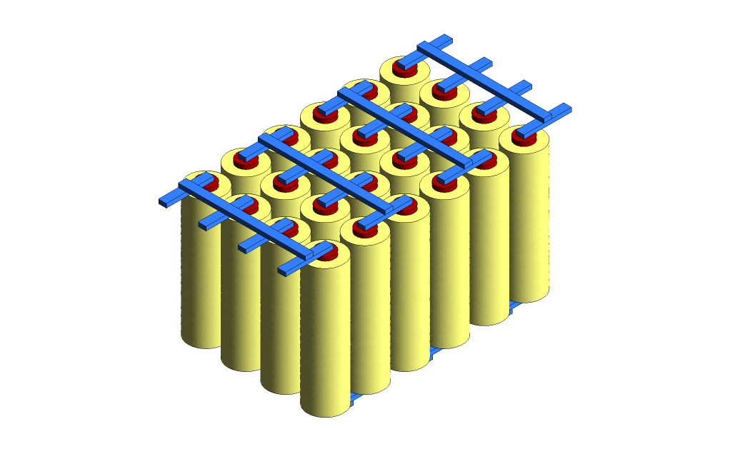 In this project, we simulated 24 cylindrical batteries in series and parallel connections as a battery pack. Our battery pack consists of 6 battery series stages and 4 batteries in parallel per series stage. So, we call the 4P6S battery pack.