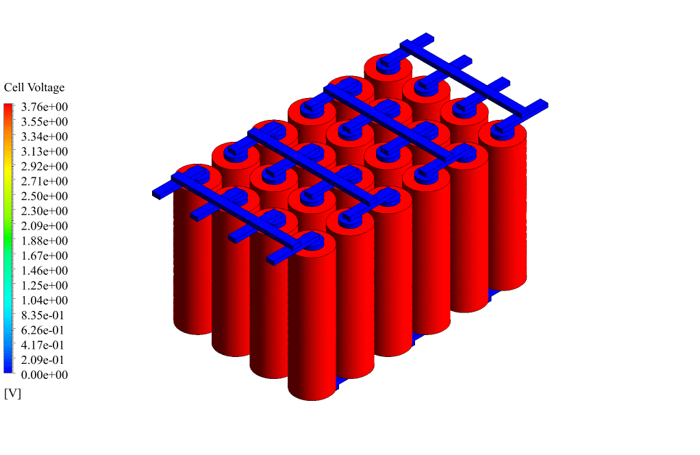 In Fluent, we can model a single battery or a battery pack. A battery pack is a combination of individual cells connected in parallel or serial for the desired operating voltage and current.