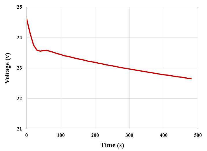 The results show that when the battery pack is discharging, its overall voltage decreases. On the other hand, due to the battery pack operation, heat is generated and the surface temperature of individual batteries increases.