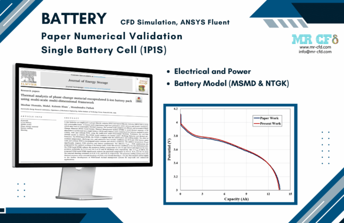 We present this CFD product based on the simulation of a reference article, “Thermal analysis of phase change material encapsulated Li-ion battery pack using multi-scale multi-dimensional framework.” So, we compare the results of the present work with the reference article to validate the paper.