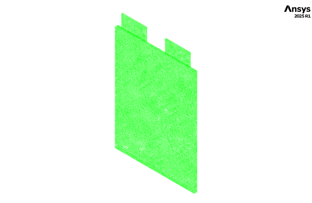 First, we model the computational domain geometry using “Design Modeler” software. So, we design a vertical pouch battery that consists of an active cell with positive and negative tabs.