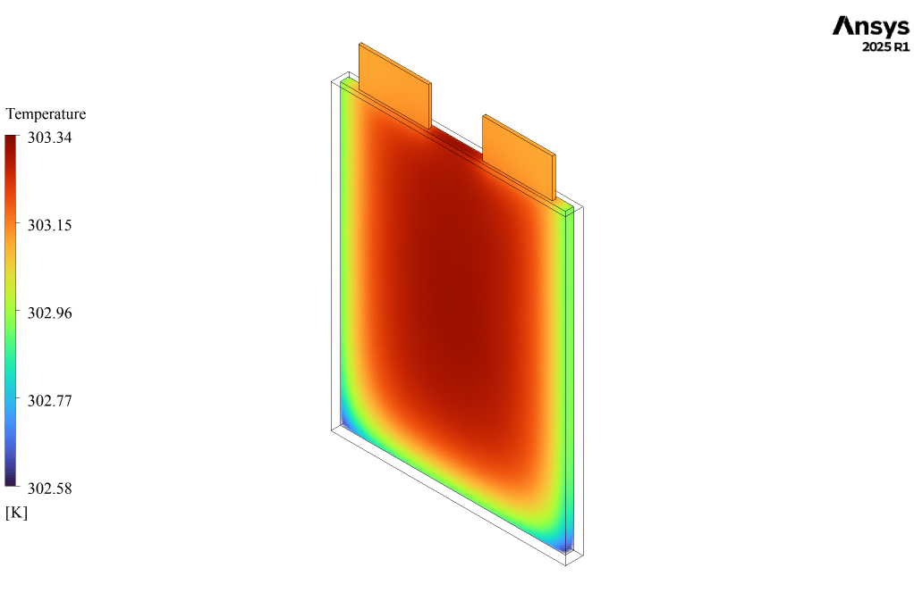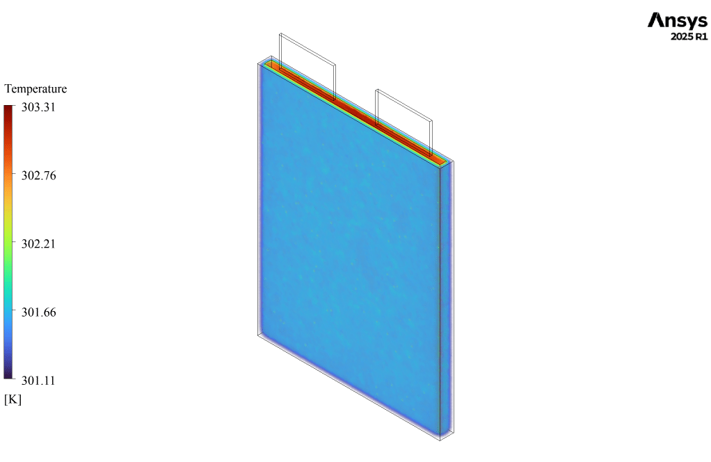 Finally, we simulate the present battery system using the “Battery Model” in Ansys Fluent software.