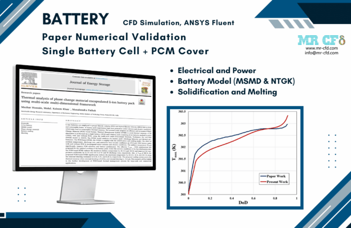We present this CFD product based on the simulation of a reference article, “Thermal analysis of phase change material encapsulated Li-ion battery pack using multi-scale multi-dimensional framework.” So, we compare the results of the present work with the reference article to validate the paper.