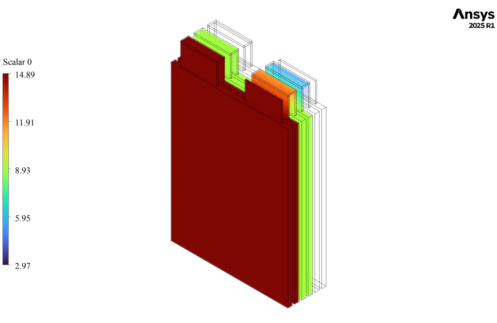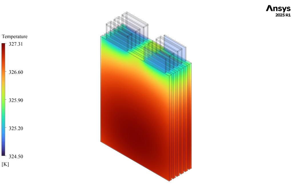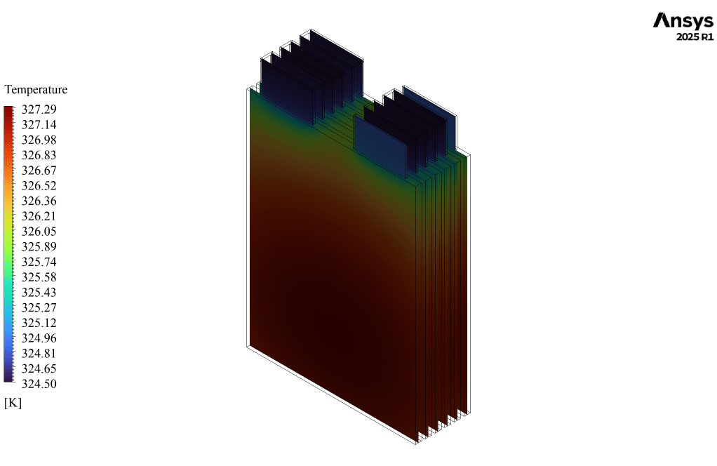Finally, we simulate the present battery system using the “Battery Model” in Ansys Fluent software.