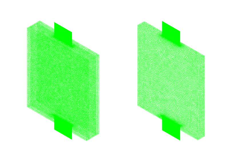 We mesh the model in Ansys Meshing software. In case 1, 519,466 elements are generated and in case 2, 650,809 elements are generated.