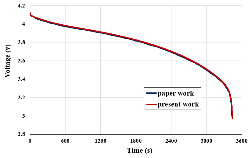 We intend to analyze the battery discharge process at a 1 C rate. The C-rate is the charging/discharging current to the battery’s nominal capacity. We set up other battery modeling information according to the reference article; Including materials, boundary conditions, battery parameters, etc.