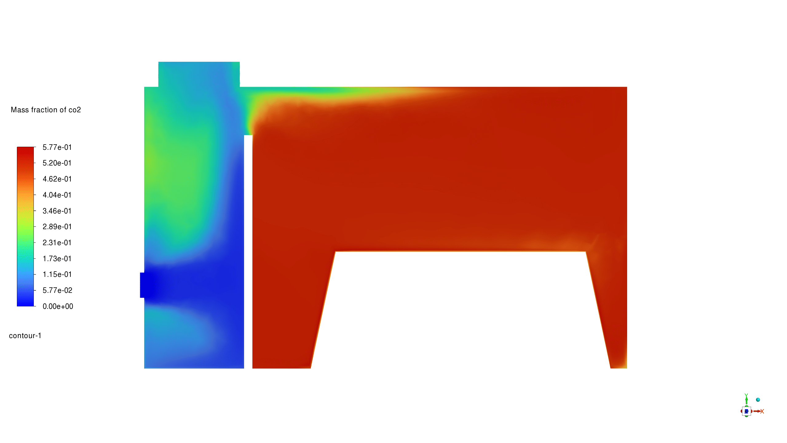 - The eddy-dissipation model is activated for turbulence-chemistry interaction.