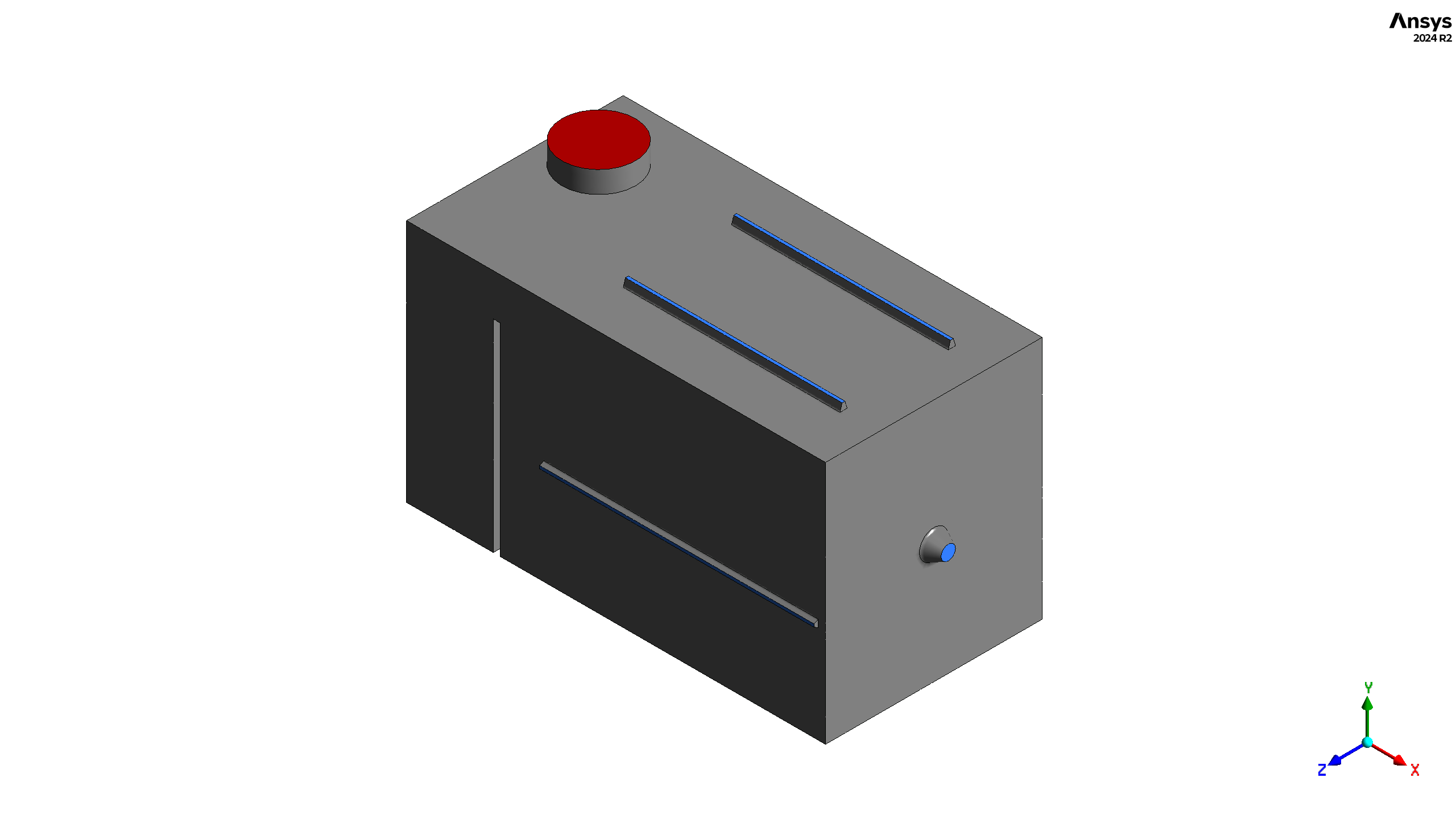 - The 3-D geometry is designed in ANSYS Design Modeler, and then is meshed using ANSYS Mesh, with the total 6,893,518 element number.