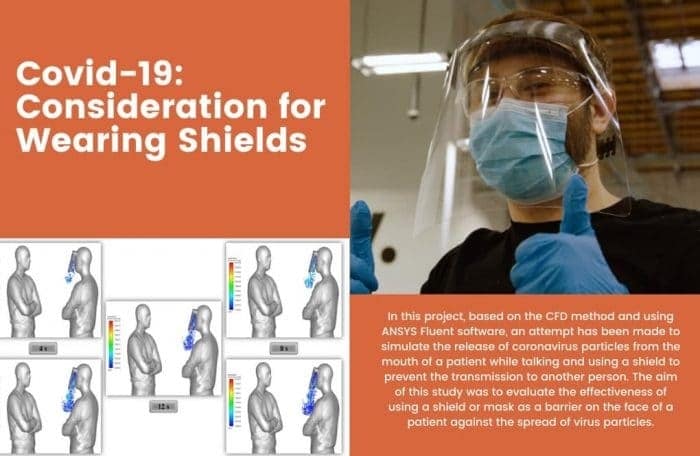 In problem number 7, based on the CFD method and using ANSYS Fluent software, an attempt has been made to simulate the release of coronavirus particles from a patient’s mouth while talking and using a shield (mask) to prevent transmission to another person. The aim of this study was to evaluate the effectiveness of using a shield or mask as a barrier on the face of a patient against the spread of virus particles. Also, for the present simulation, the discrete phase model (DPM) is used.