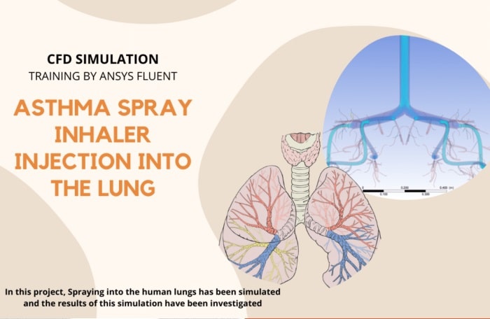 In training number 9, Asthma Spray in human lungs was investigated using the one-way DPM (Discrete Phase Method) method using Ansys Fluent software. In this simulation, two types of material are used: air and particles that enter the lungs as Discrete phase material. Trajectories of particles within the lung were observed using Ansys Fluent software.
