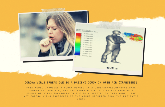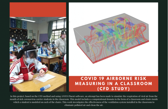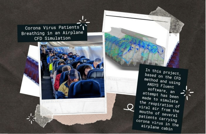 In project number 2, based on the CFD method, an attempt has been made to simulate the respiration of viral air from the mouths of several patients carrying coronavirus in the aircraft. This model includes a computational domain in the form of an airplane and seats inside it, on each of which a passenger is modeled. For each of these passengers, a surface is defined as the mouth as the source of respiration and transmission of the coronavirus. In practical exercise number 3, an attempt has been made to simulate the respiration of viral air from the mouth of sick coronavirus carrier students in the classroom. This model includes a computational domain in the form of a classroom and chairs inside which a student is modeled on each of the chairs. For each student, a surface is defined as the mouth as the source of the virus’s respiration and transmission.