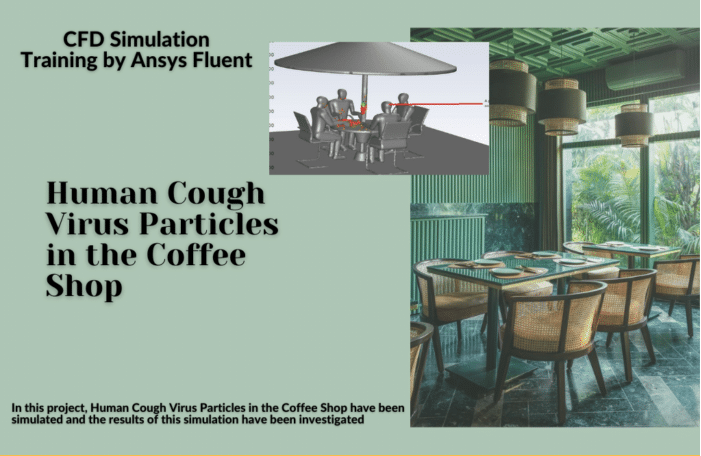 Training number 4 simulated the release of coronavirus particles from the patient’s mouth during coughing in the open air. This model involves a human placed in a cube-shaped computational domain in the open air, and the human mouth is distinguished as a source of virus transmission. To simulate this model, a discrete phase model (DPM) must be used. In project number 5, human cough virus particles in the coffee shop have been simulated using two-way DPM. According to this definition of injection, human cough virus particles are physically expelled from the patient’s mouth by water droplets evaporating in space. These virus droplets have a temperature of 310 K, a velocity of 31.85 m.s-1, and a mass flow of 0.018 kg.s-1, emitted at intervals of 0s to 0.1s.