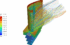 The simulation results showed the path lines of the cool air as it traveled inside the inner channels of the blade and exchanged heat with the hot gases flowing outside.