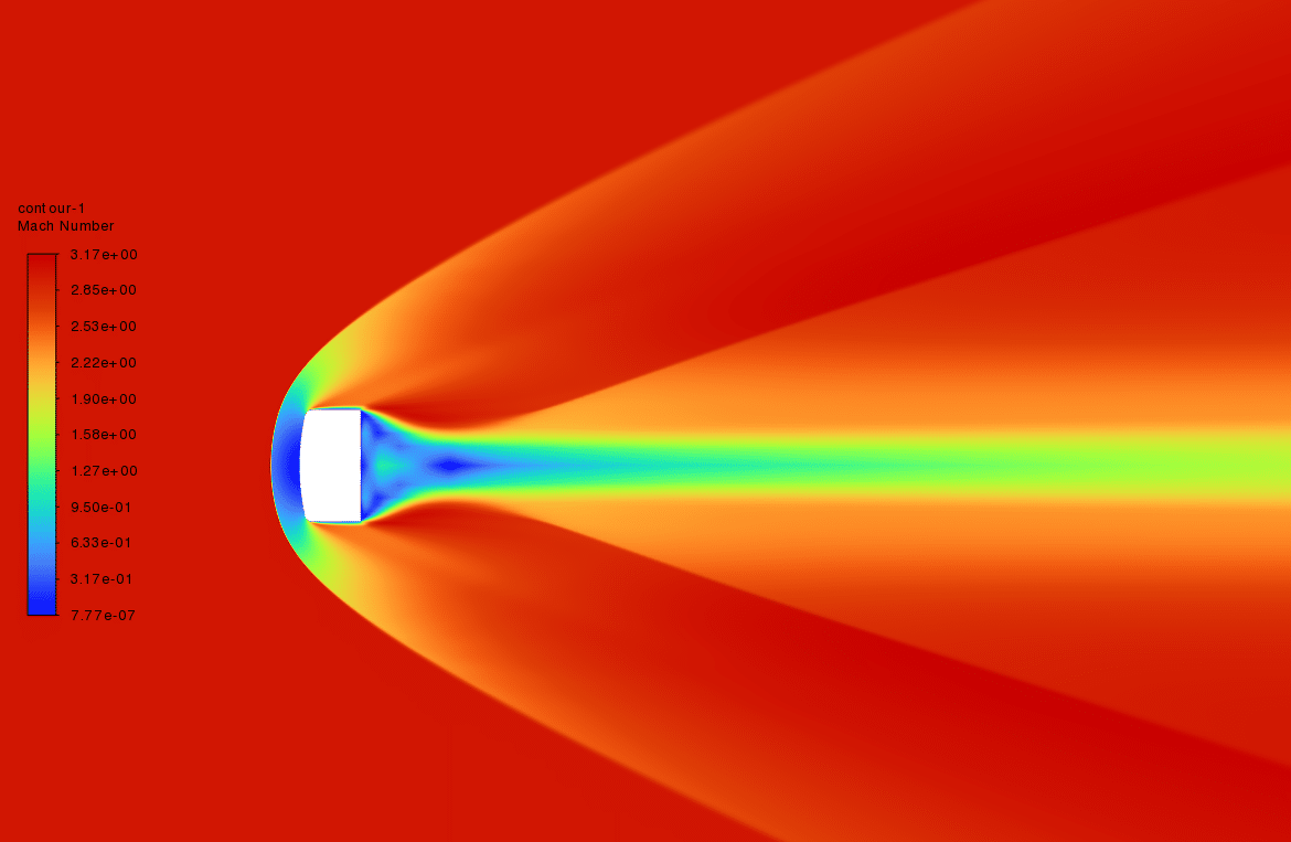 In this project, we are going to simulate a bluff body reentry problem. The vehicle’s Mach number at a reentry mission is so high, and the flow goes to a regime, namely “Hypersonic.” In this situation, the shock layer gets close to the wall, so the boundary layer and shock will interact with each other, and the wall temperature will rise dramatically. To solve this issue, engineers design the shape of reentry vehicles, such as a bluff body.