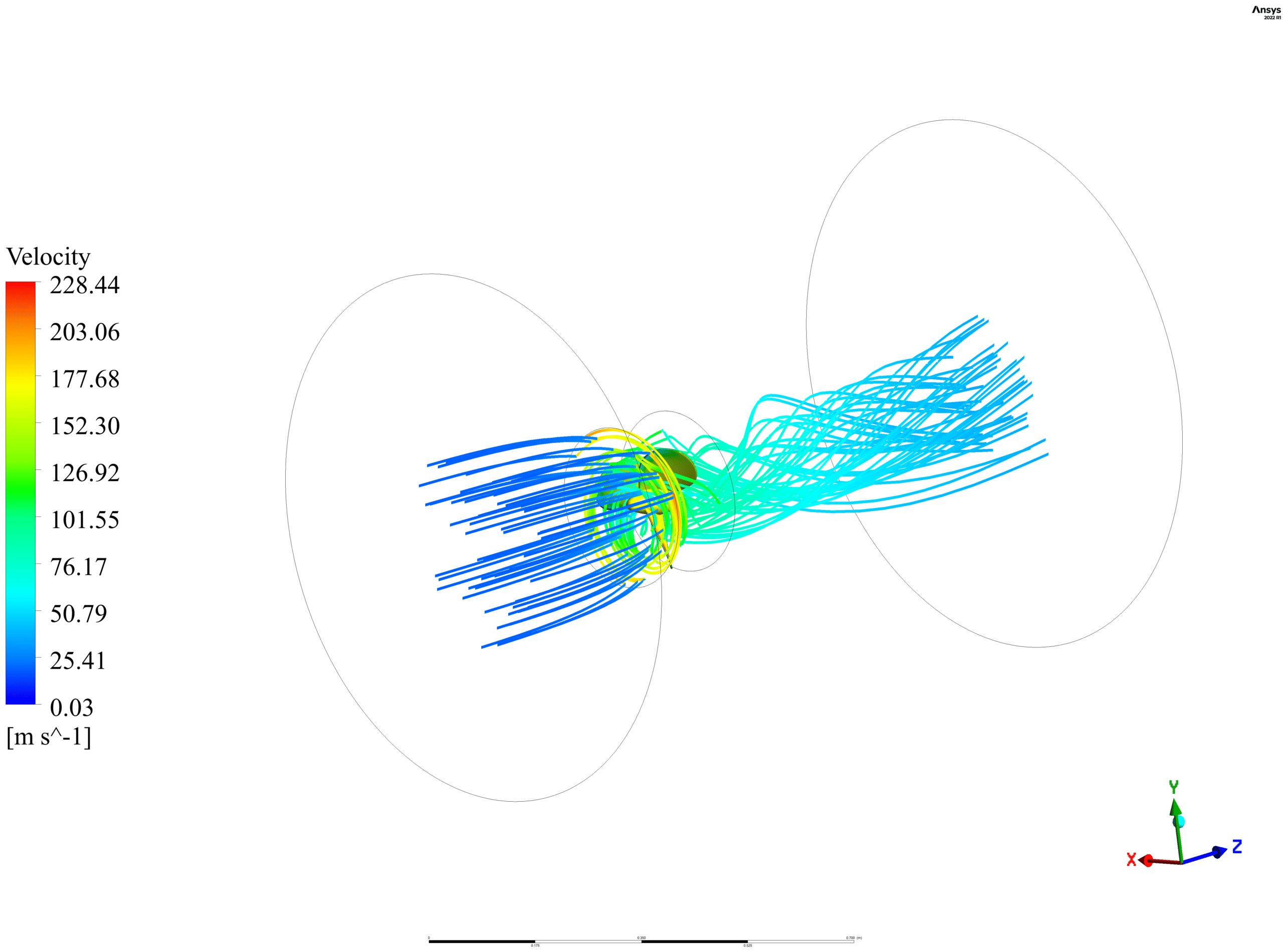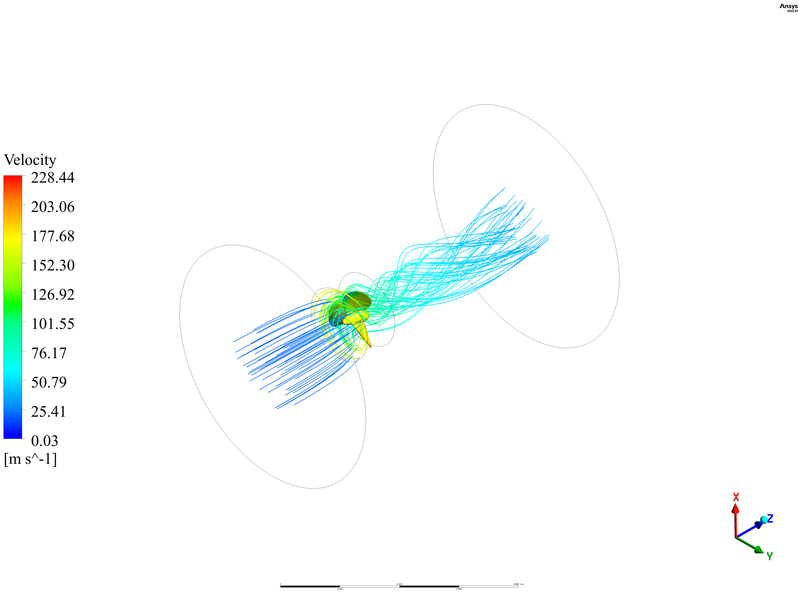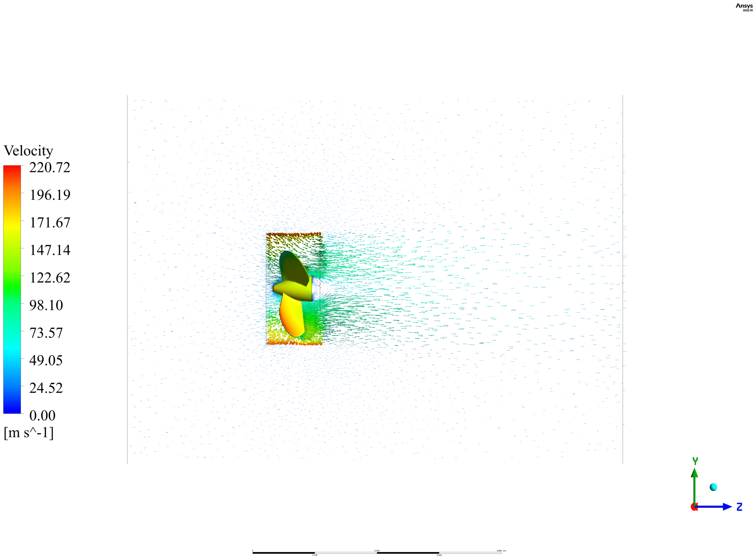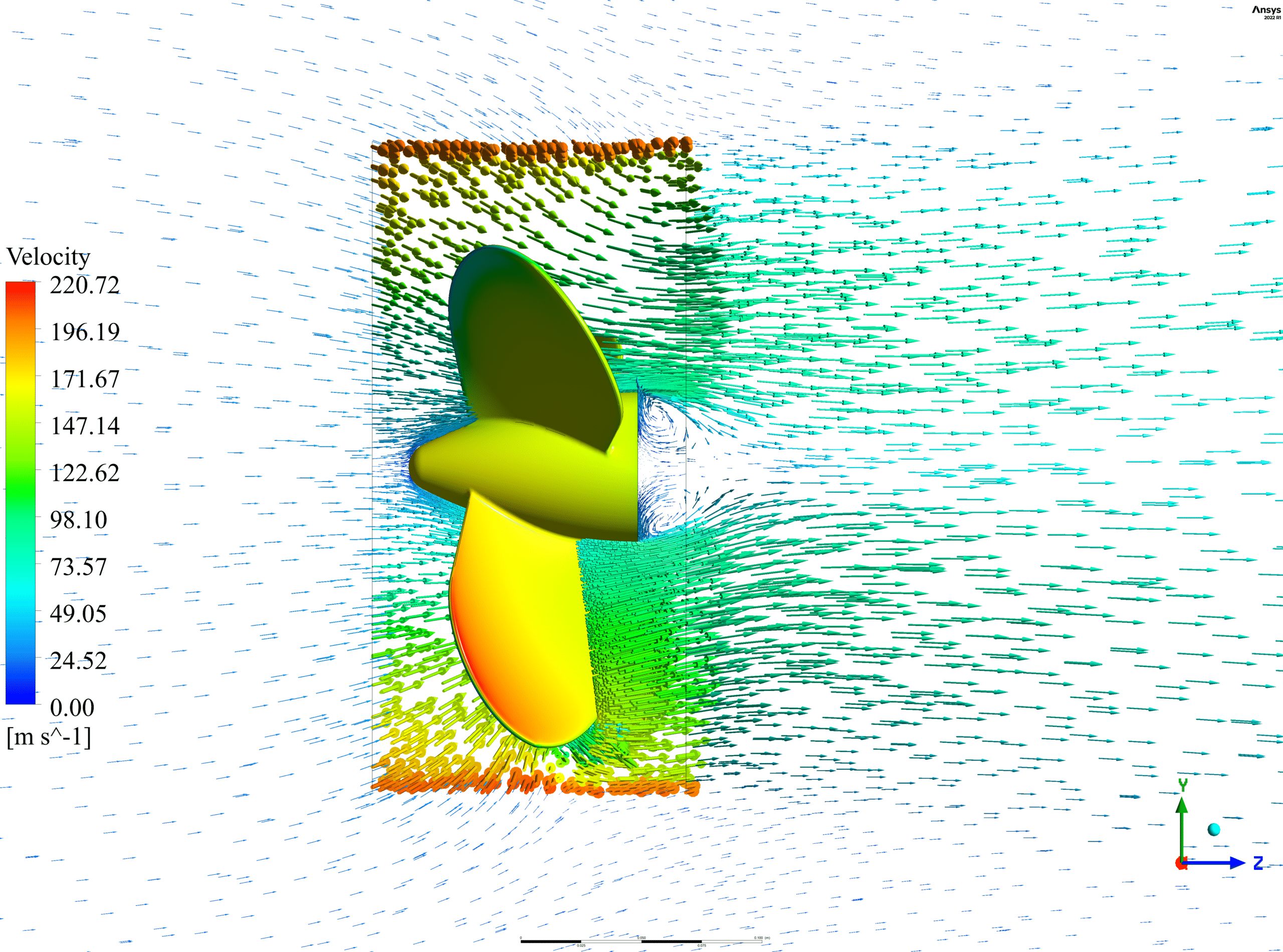 Additionally, if you give closer attention, you can see the vortexes behind the propeller via the vectors and streamlines.