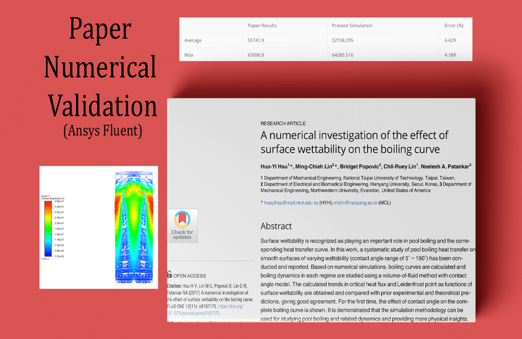 The present problem simulates the nucleate boiling inside a vertical channel by ANSYS Fluent software. The simulation is based on a reference paper, “A numerical investigation of the effect of surface wettability on the boiling curve,” Its results are compared and validated with the results in the article.