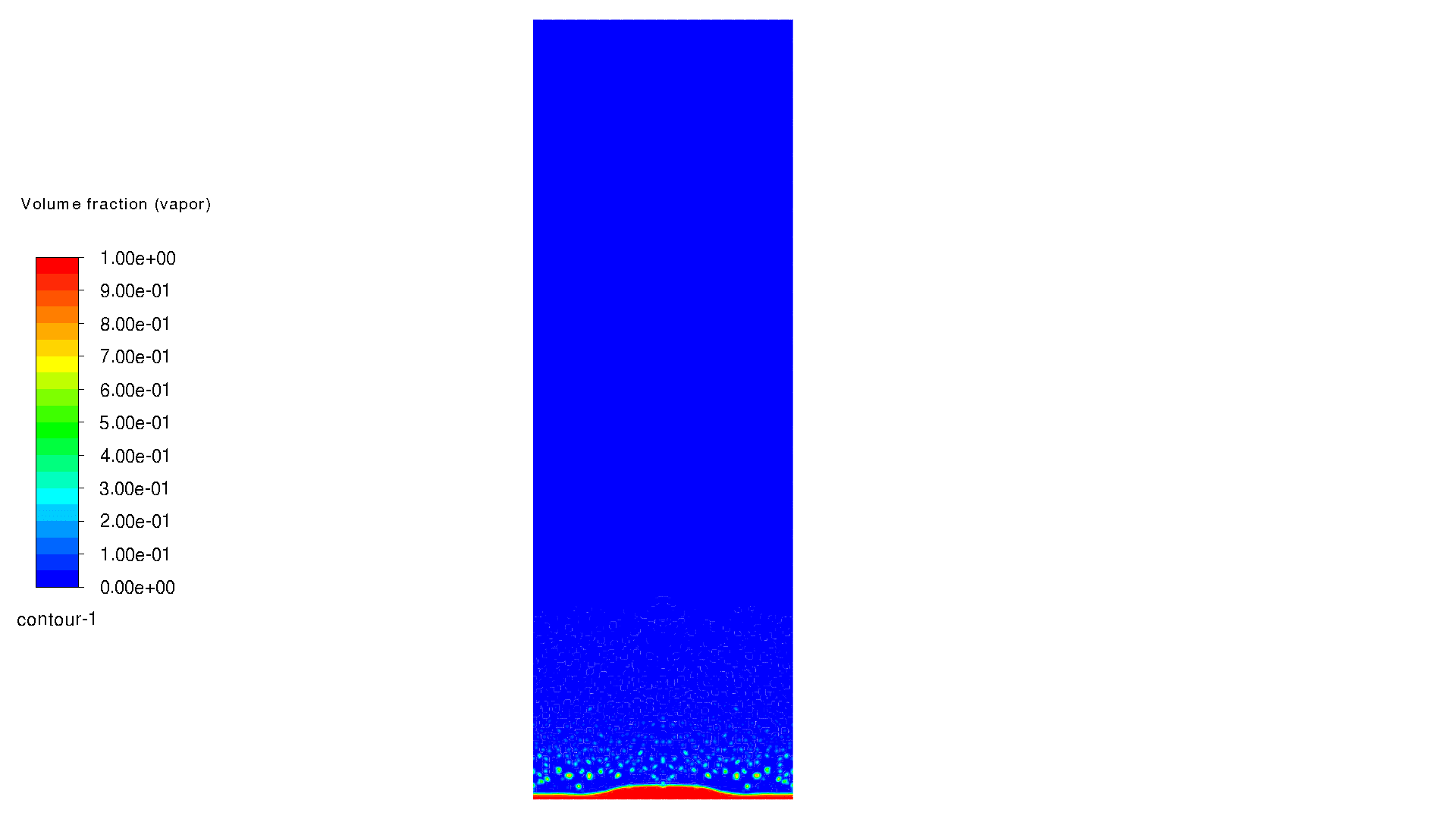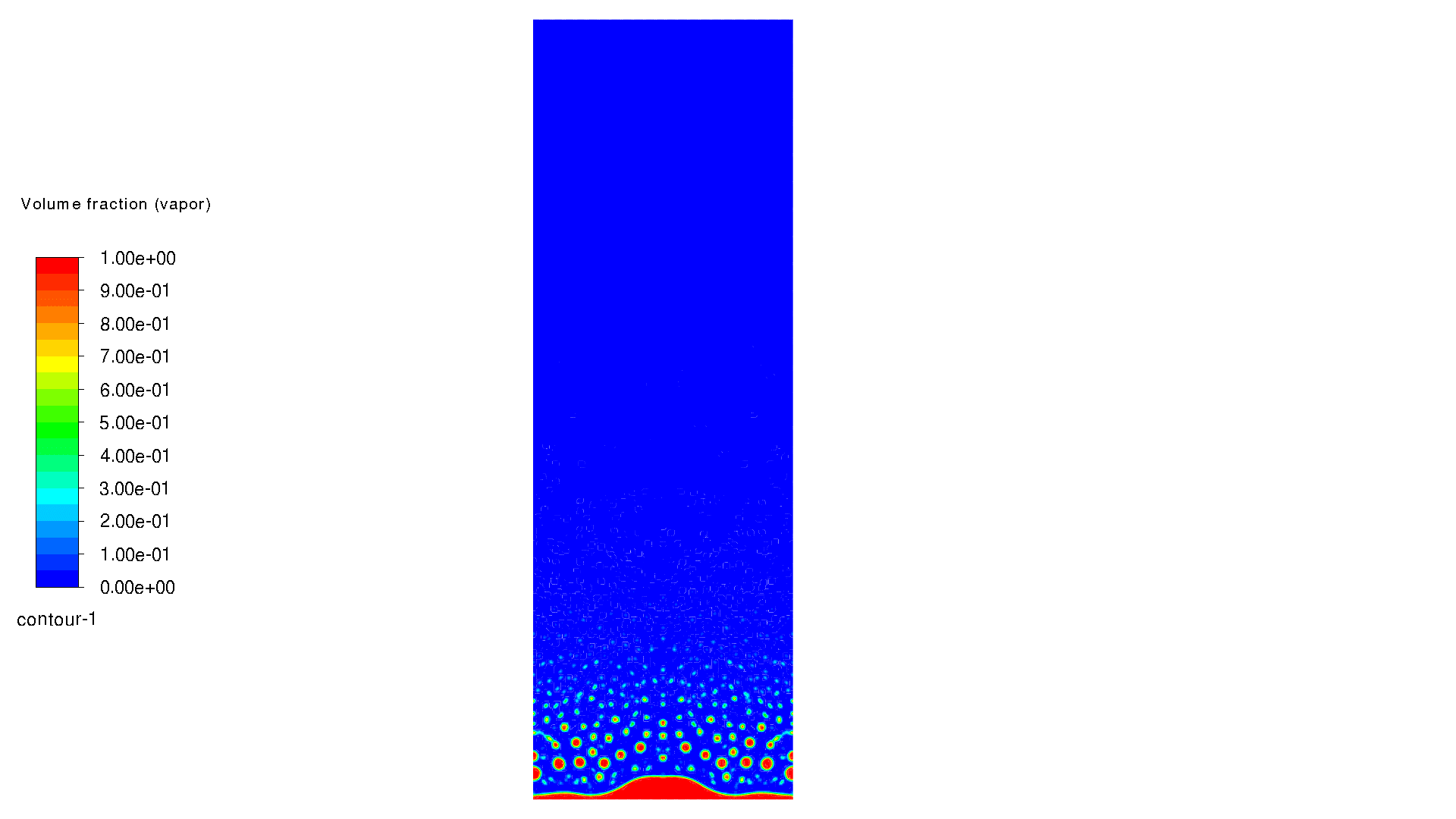 The simulation is run over multiple time steps to reflect the transient behavior of the boiling process.